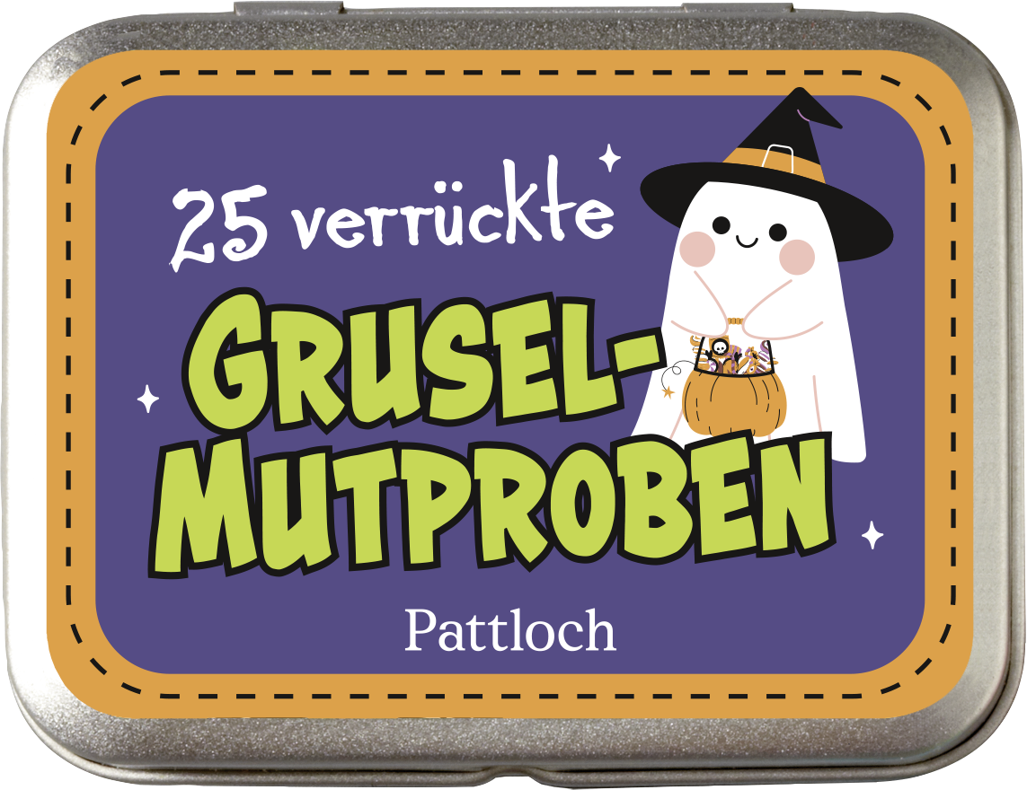 Metalldose mit 25 lustigen Aufgaben und Spielen für die Halloween-Feier | Spielideen für Kinder ab 6 Jahren