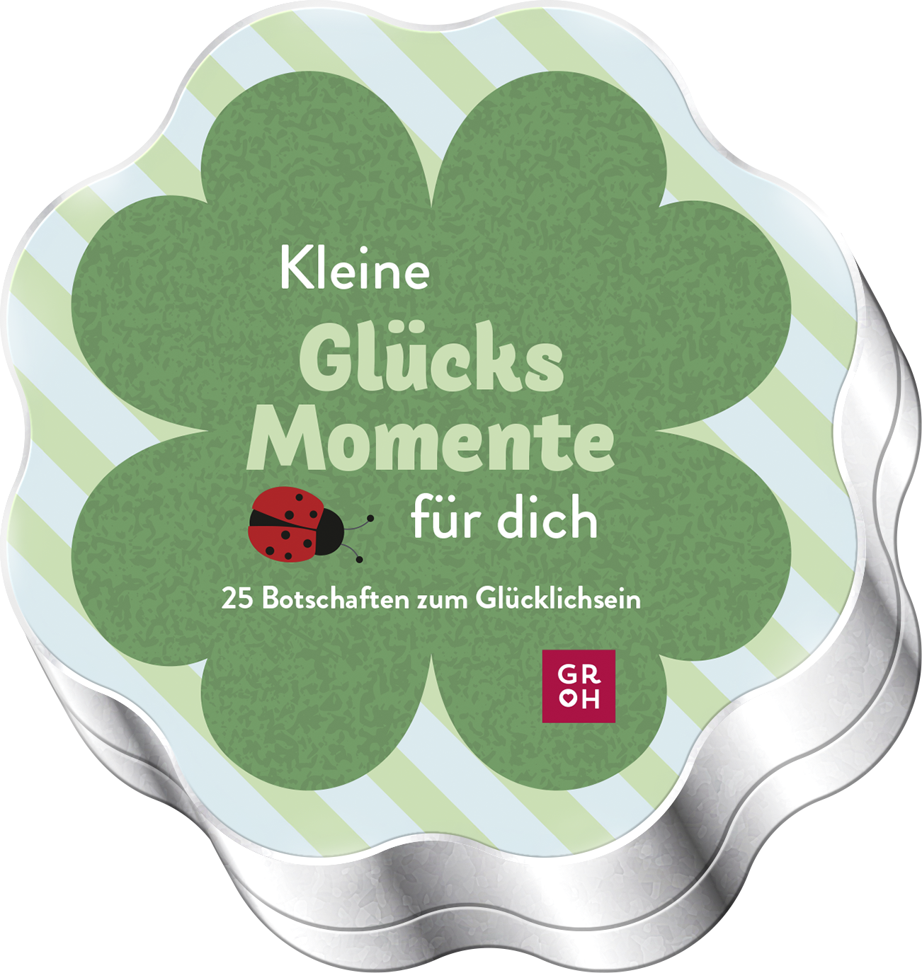25 Botschaften zum Glücklichsein | Metalldose mit Glückskarten in Kleeblatt-Form für Optimismus und Motivation im Alltag